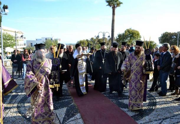 Ο Αρχιερατικός Επίτροπος προσεφώνησε τον Σεβ. κ. Διονύσιο εκ μέρους του Σεβ. Ποιμενάρχου ημών, τον καλωσόρισε στο ιερό νησί της Παναγίας και τον ευχαρίστησε για την διακομιδή του Τιμίου Λειψάνου.