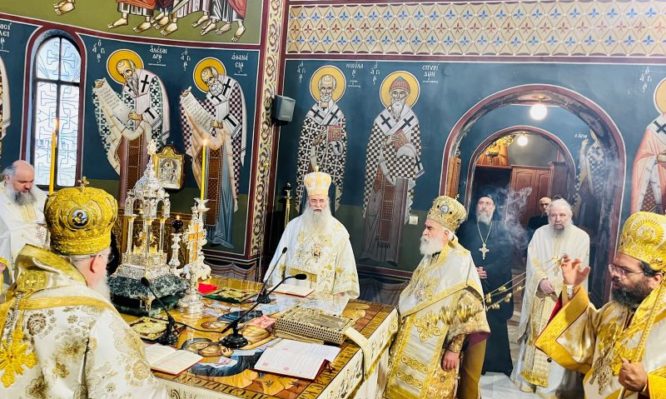 Οἱ κληρικοί μνημονεύουν τόν Ποιμενάρχη, πού ἄφησε πίσω του μιά ἔντονη λειτουργική μεγαλοπρέπεια.