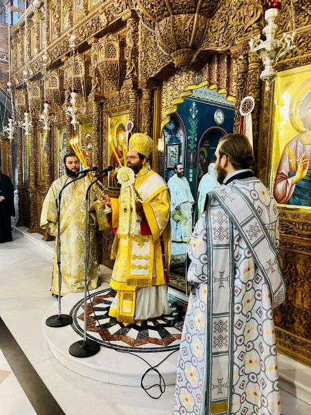 Συλλειτούργησαν οἱ Ἀρχιερεῖς Ξάνθης κ. Παντελεήμων, Μαρωνείας κ. Παντελεήμων, Φιλίππων κ. Στέφανος και ὀ οἰκεῖος ποιμενάρχης κ. Δωρόθεος. Στήν Θεία Λειτουργία μίλησε γιά τό νόημα τῆς Κυριακῆς τῶν Μυροφόρων ὁ Μητροπολίτης Ξάνθης κ. Παντελεήμων.