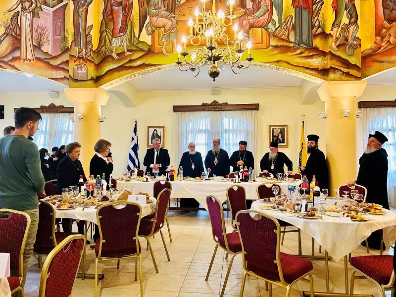 Τέλος, στην Αἴθουσα τοῦ Συσσιτίου τῆς Ἱερᾶς Μητροπόλεως Δράμας, τό ὁποῖο ἐπαναλειτουργεῖ ἀπό την προσεχή Τρίτη, 2 Μαΐου, παρατέθηκε γεῦμα πρός τιμήν τῶν συμμετεχόντων.