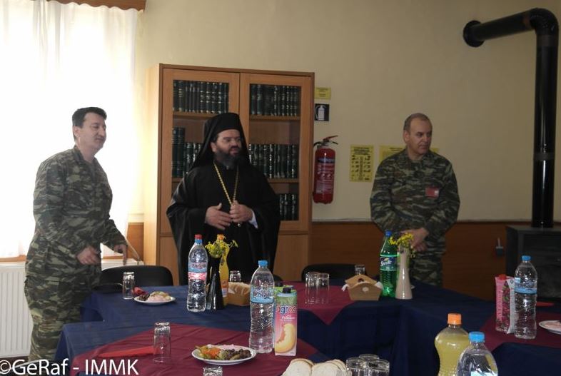 Ο Σεβασμιώτατος Μητροπολίτης Μαρωνείας και Κομοτηνής κ. Παντελεήμων μίλησε περί του Θεανδρικού προσώπου της Κυρίας Θεοτόκου και της παρουσίας της ως Υπερμάχου Στρατηγού και προστάτιδος πάντων των προασπιζομένων τα όρια της Πατρίδος γης, συνεχάρη δε πάντας διά την πιστότητα στις αξίες και προέτρεψε να συνεχίσουν με το ίδιο ηθικό ως διάδοχοι αξίων προγόνων.
