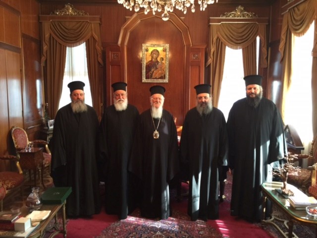 Οἱ τρεῖς Ἀρχιερεῖς, ἔτυχαν ὑποδοχῆς μέ μεγάλη ἀγάπη ἀπό τον κ. Βαρθολομαῖο συζητήσαντες ἐπ’ ἀρκετόν μαζί του καί παρεκάθησαν τῇ εὐγενῇ προσκλήσει τοῦ Παναγιωτάτου, στήν Πατριαρχική Τράπεζα.