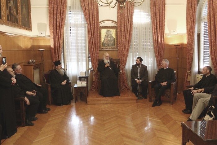 Ο Κοσμήτορας ευχαρίστησε τον Αρχιεπίσκοπο για την υποδοχή και μίλησε για την σημασία του διαλόγου και την Συνοδικότητα. Ο Αρχιεπίσκοπος τους καλωσόρισε και αναφέρθηκε σε ουσιαστικά ζητήματα που τους απασχολούν. Μίλησε για τις ιερατικές συνάξεις που πραγματοποίησε πρόσφατα η Ι.Α.Α. και στο θέμα που αναπτύχθηκε αναφορικά με τις σχέσεις των κληρικών με τον Επίσκοπό τους. Τόνισε, επίσης, ότι όποια θέματα προκύπτουν αντιμετωπίζονται όλα συνοδικά.
