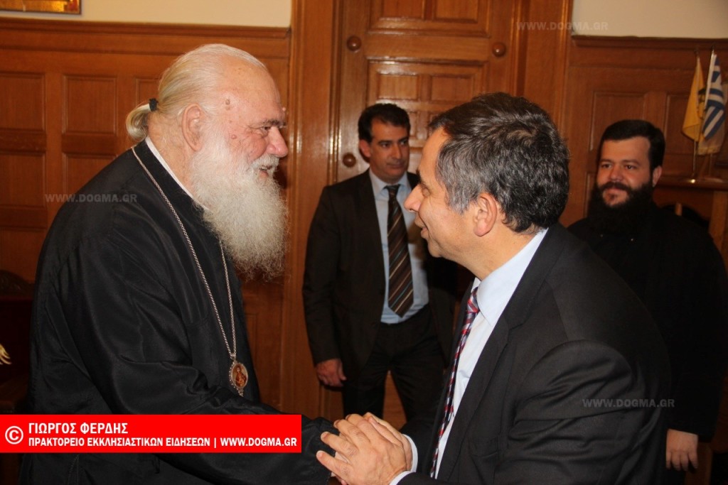 Συνάντηση με τον Πρόεδρο της «Ευρωπαϊκής Οικονομικής και Κοινωνικής Επιτροπής» και της «Ένωσης Ευρωπαίων Εργοδοτών» κ. Ανρί Μαλόζ είχε πριν από λίγο ο Αρχιεπίσκοπος Αθηνών και Πάσης Ελλάδος κ.Ιερώνυμος.