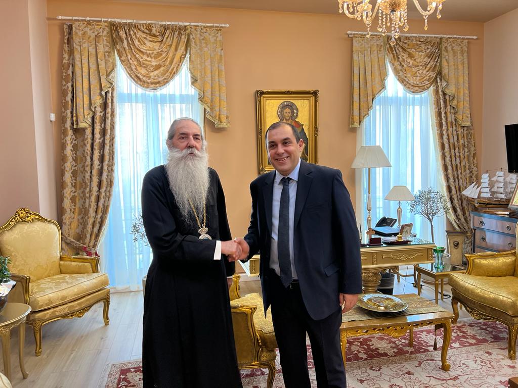 Ο Σεβασμιώτατος αφού τον ευχαρίστησε για την ευγένειά του να είναι ο ίδιος ο πρώτος που τον επισκέπτεται επίσημα ως Υφυπουργός Προστασίας του Πολίτη, τον συνεχάρη για την ανάληψη των καθηκόντων του και το πολύ υπεύθυνο και σημαντικό για την Ελληνική κοινωνία χαρτοφυλάκιο που του ανέθεσε ο Πρωθυπουργός της χώρας και Πρόεδρος της Ελληνικής Κυβέρνησης Κυριάκος Μητσοτάκης, ευχόμενος τόσο το έργο της νέας Κυβερνήσεως να αποδώσει πλούσιους καρπούς επ’ ωφελεία ολόκληρου του Ελληνικού λαού, αλλά και στον ίδιο να έχει έργο πολύκαρπο και διακονία θυσιαστική.