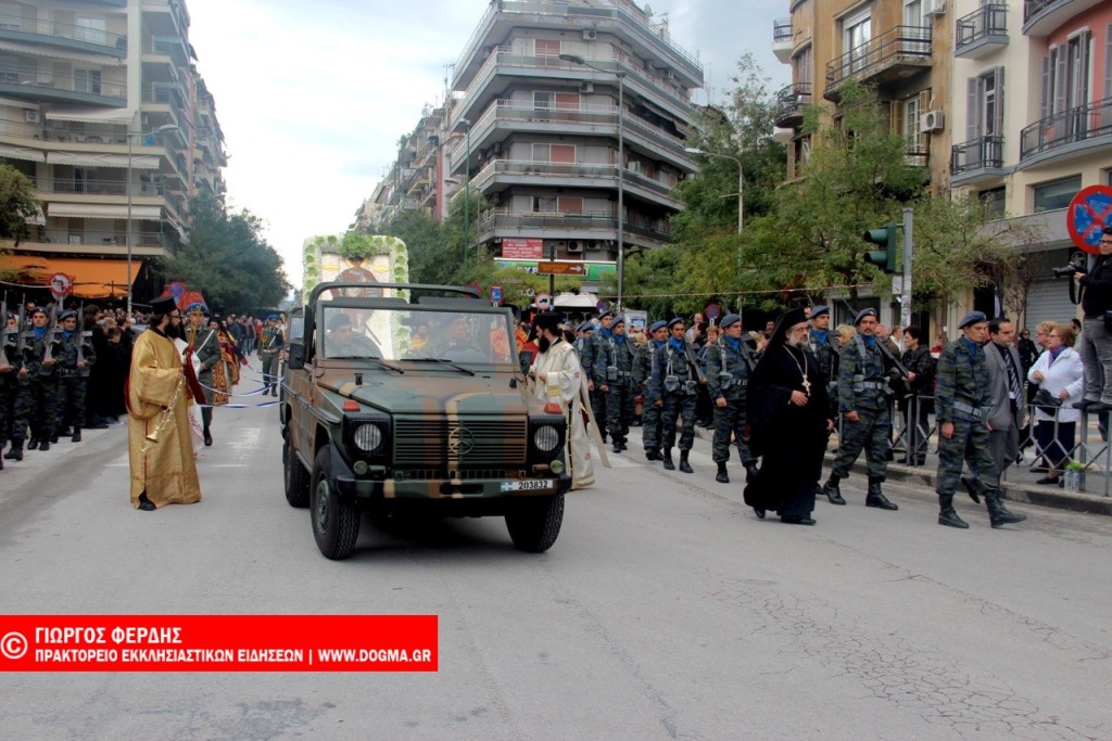 Στους δρόμους της Θεσσαλονίκης λιτανεύθηκε το λείψανο του Αγίου Δημητρίου και η εικόνα της Παναγίας Τριφώτισσας σήμερα το πρωί στην καθιερωμένη λιτανεία εν όψη της εορτής του Πολιούχου Αγίου.
