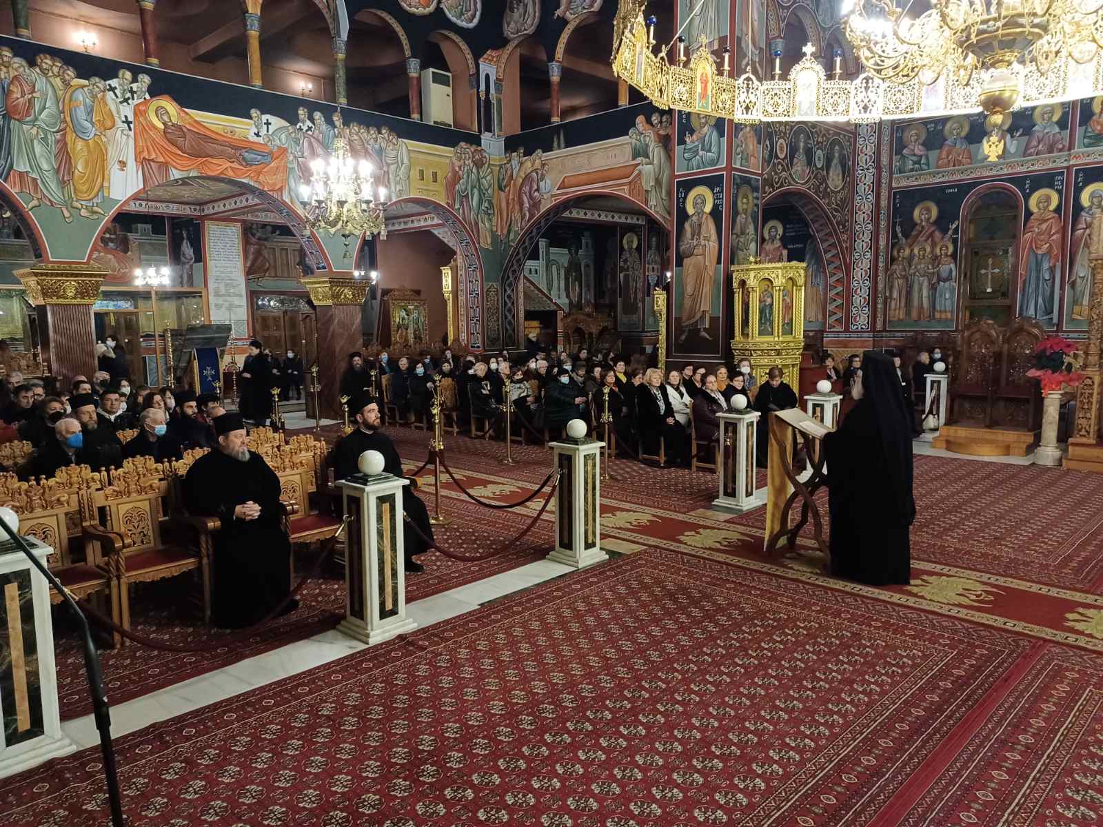 Προηγήθηκε η τελετή κοπής της Αγιοβασιλόπιτας, μετά το πέρας της οποίας ο Σεβασμιώτατος μίλησε στο πολυπληθές ακροατήριο με αφορμή την ανάθεση στις Επιτροπές της ευθύνης της διοίκησης των Ιερών Ναών και της διαχείρισης της περιουσίας τους, προκειμένου από την αρχή να τεθούν ορθές και υγιείς βάσεις συνεργασίας τους με την Ιερά Μητρόπολη και μεταξύ των μελών τους. Μετά την εκτενή αναφορά του στα καθήκοντα και τις υποχρεώσεις τόσο των Εκκλησιαστικών Επιτροπών όσο και της Ιεράς Μητροπόλεως, ο Σεβασμιώτατος Μητροπολίτης έκλεισε λέγοντας: «…Ὁ Ἀπόστολος Παῦλος γράφει ὅτι κανένας ἐργαζόμενος δέν ἀμείβεται καί κανένας ἀγωνιζόμενος δέν στεφανώνεται ”ἄν μή νομίμως ἀθλήσῃ”. Κατά συνέπειαν ἐπιβάλλεται ὅλα νά γίνονται μέσα στήν Ἐκκλησία ʺεὐσχημόνως καί κατά τάξινʺ γιά νά ἔχουν τήν εὐλογίαν τοῦ Θεοῦ. Ἐπιθυμῶ καί πάλιν νά ὑπογραμμίσω καί νά παρακαλέσω ὅλους σας νά θεωρῆτε τήν Ἱερά Μητρόπολή μας σάν Μητέρα σας καί ὄχι σάν μητρυιά σας, οὔτε νά προσπαθῆτε νά αὐτονομεῖσθε, γιατί πολύ σύντομα θά ἀντιληφθῆτε ὅτι ἡ Ἱερά Μητρόπολις είναι ἡ προστασία σας καί ἡ καταφυγή σας. Αὐτή θά σᾶς ὑποδείξει τρόπους νά ἀντιμετωπίσετε σωστά κάθε δυσκολία σας. Αὐτή θά σᾶς προστατεύσει ἀπό ποικίλους πειρασμούς μέ τό κῦρος πού διαθέτει. Αὐτή θά σᾶς ἐμπνεύσει προσανατολισμούς καί θά σᾶς καθοδηγήσει ὀρθά.