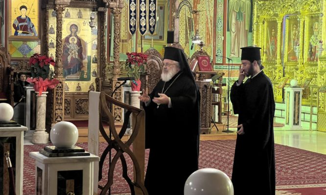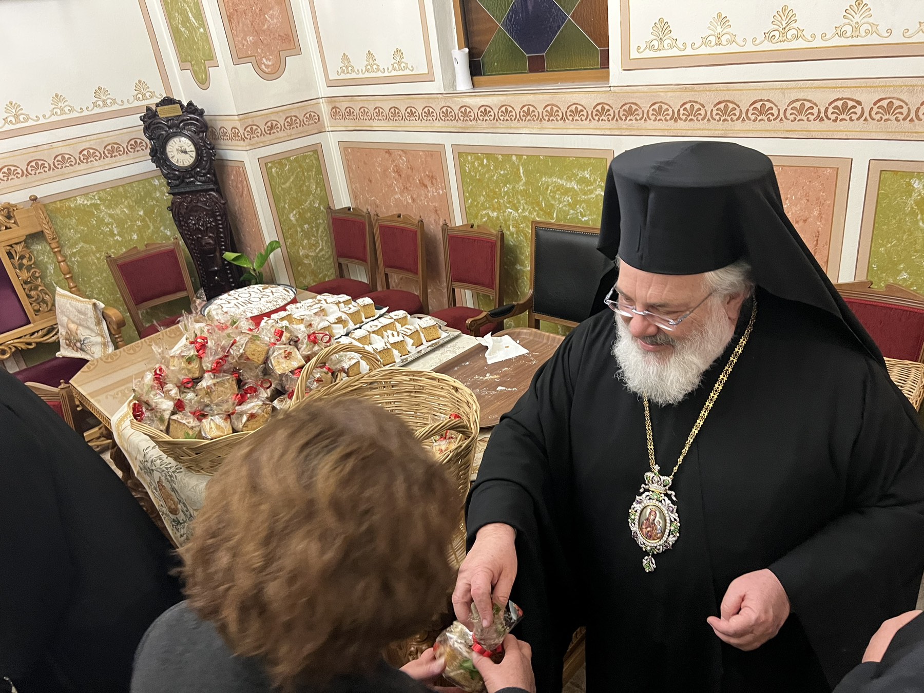 Προηγήθηκε η τελετή κοπής της Αγιοβασιλόπιτας, μετά το πέρας της οποίας ο Σεβασμιώτατος μίλησε στο πολυπληθές ακροατήριο με αφορμή την ανάθεση στις Επιτροπές της ευθύνης της διοίκησης των Ιερών Ναών και της διαχείρισης της περιουσίας τους, προκειμένου από την αρχή να τεθούν ορθές και υγιείς βάσεις συνεργασίας τους με την Ιερά Μητρόπολη και μεταξύ των μελών τους.