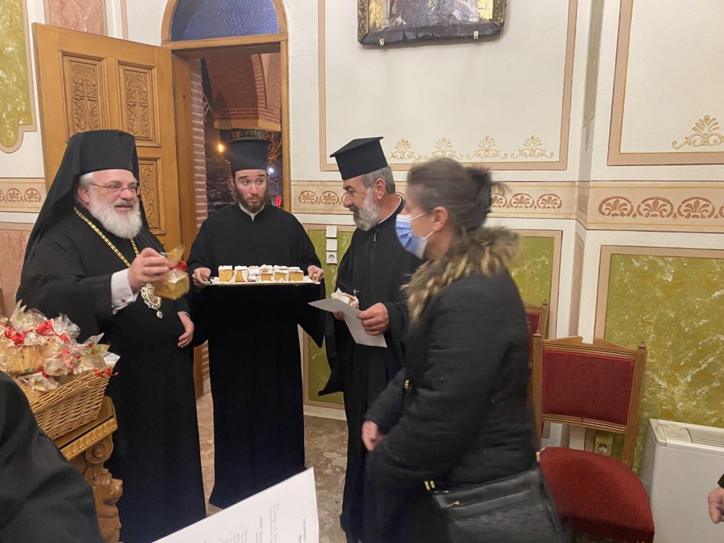 Προηγήθηκε η τελετή κοπής της Αγιοβασιλόπιτας, μετά το πέρας της οποίας ο Σεβασμιώτατος μίλησε στο πολυπληθές ακροατήριο με αφορμή την ανάθεση στις Επιτροπές της ευθύνης της διοίκησης των Ιερών Ναών και της διαχείρισης της περιουσίας τους, προκειμένου από την αρχή να τεθούν ορθές και υγιείς βάσεις συνεργασίας τους με την Ιερά Μητρόπολη και μεταξύ των μελών τους. Μετά την εκτενή αναφορά του στα καθήκοντα και τις υποχρεώσεις τόσο των Εκκλησιαστικών Επιτροπών όσο και της Ιεράς Μητροπόλεως, ο Σεβασμιώτατος Μητροπολίτης έκλεισε λέγοντας: «…Ὁ Ἀπόστολος Παῦλος γράφει ὅτι κανένας ἐργαζόμενος δέν ἀμείβεται καί κανένας ἀγωνιζόμενος δέν στεφανώνεται ”ἄν μή νομίμως ἀθλήσῃ”. Κατά συνέπειαν ἐπιβάλλεται ὅλα νά γίνονται μέσα στήν Ἐκκλησία ʺεὐσχημόνως καί κατά τάξινʺ γιά νά ἔχουν τήν εὐλογίαν τοῦ Θεοῦ. Ἐπιθυμῶ καί πάλιν νά ὑπογραμμίσω καί νά παρακαλέσω ὅλους σας νά θεωρῆτε τήν Ἱερά Μητρόπολή μας σάν Μητέρα σας καί ὄχι σάν μητρυιά σας, οὔτε νά προσπαθῆτε νά αὐτονομεῖσθε, γιατί πολύ σύντομα θά ἀντιληφθῆτε ὅτι ἡ Ἱερά Μητρόπολις είναι ἡ προστασία σας καί ἡ καταφυγή σας. Αὐτή θά σᾶς ὑποδείξει τρόπους νά ἀντιμετωπίσετε σωστά κάθε δυσκολία σας. Αὐτή θά σᾶς προστατεύσει ἀπό ποικίλους πειρασμούς μέ τό κῦρος πού διαθέτει. Αὐτή θά σᾶς ἐμπνεύσει προσανατολισμούς καί θά σᾶς καθοδηγήσει ὀρθά.