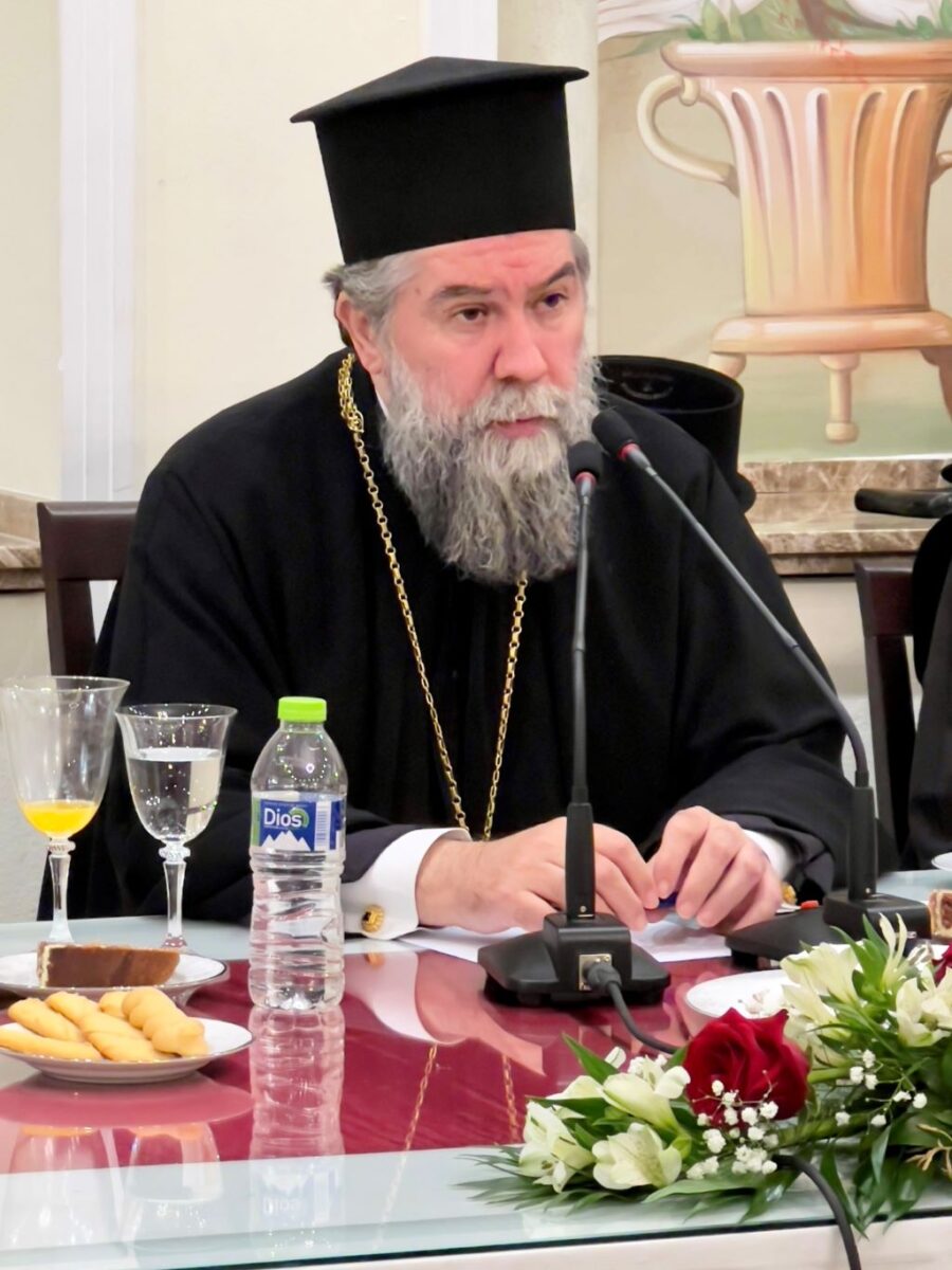 «Η θεοφιλεστάτη ενότητα των μελών της μεγάλης οικογενείας του Θεού, της αγίας δηλαδή Εκκλησίας μας, είπε ο Σεβασμιώτατος, είναι πάντοτε το ζητούμενο στην ζωή μας. Η αγία Εκκλησία μας πάντοτε διδάσκει με ήθος φιλόθεο και φιλάδελφο τον λόγο της αληθείας του Χριστού, που θεραπεύει, φωτίζει και αγιάζει τον κόσμο. Η μία και μόνη Εκκλησία του Χριστού, καθώς είναι το πανάγιον, μυστηριακόν Σώμα Του, κατά τον θείο Παύλο, υπάρχει στύλος και εδραίωμα της αληθείας, ακένωτον ταμείον της θείας χάριτος, θεότευκτον εργαστήριον και κιβωτός σωτηρίας, τόπος και τρόπος εγχριστώσεως και σωτηρίας, κοινωνία θεώσεως, εκφράζεται, εργάζεται, λειτουργεί στον κόσμο συντεταγμένως και ιεραρχικώς, διά των χαρισματούχων Της, των οποίων προεξάρχει πρωτευθύνως και θυσιαστικώς, ως έμψυχος εικόνα Ιησού Χριστού, ο Επίσκοπος κάθε τοπικής Εκκλησίας.