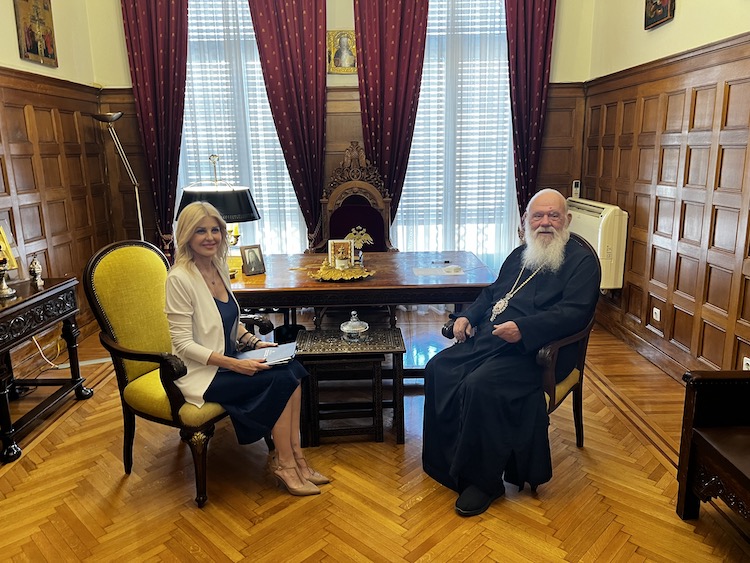 Συνάντηση με την υφυπουργό Τουρισμού κυρία Έλενα Ράπτη είχε σήμερα το πρωί ο Αρχιεπίσκοπος Αθηνών και πάσης Ελλάδος κ. Ιερώνυμος και συζήτησαν διάφορα θέματα σχετικά με τον προσκυνηματικό τουρισμό.