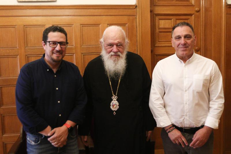 Το μεσημέρι τον Αρχιεπίσκοπο επισκέφθηκαν τα μέλη του Δ.Σ. του Πανελληνίου Συλλόγου Αθλουμένων Εργαζομένων στα Μέσα Μαζικής Ενημέρωσης. Ο Πρόεδρος του Συλλόγου κ. Τάσος Δρακωτός και ο Γραμματέας κ. Νίκος Μερτζάνης ευχαρίστησαν τον Αρχιεπίσκοπο για την υποδοχή και ανέπτυξαν ένα σχέδιο συνεργασίας και προσφοράς στο πλαίσιο των εκδηλώσεων που πραγματοποιεί ο Π.Σ.Α.Ε. Μ.Μ.Ε..