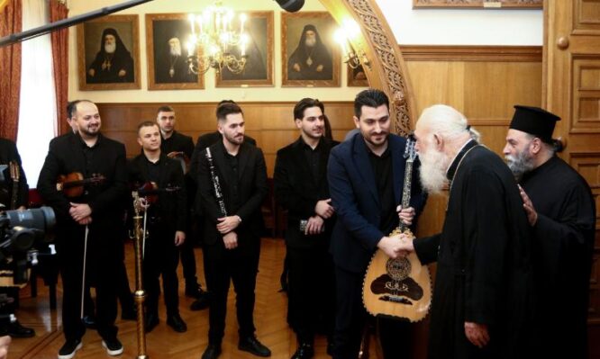Συνάντηση με νέες και νέους από το καινοτόμο μουσικό–εκπαιδευτικό πρόγραμμα «Επίλεκτο Ηπειρωτικό Ensemble» της Ιεράς Μητροπόλεως Ιωαννίνων είχε σήμερα το πρωί ο Αρχιεπίσκοπος Αθηνών και πάσης Ελλάδος κ. Ιερώνυμος. Τα παιδιά συνόδευε ο Μητροπολίτης Ιωαννίνων κ. Μάξιμος, ο οποίος παρουσίασε στον Αρχιεπίσκοπο τη δράση και την πορεία του προγράμματος, ενώ οι συμμετέχοντες παρουσίασαν στον Μακαριώτατο μια σύντομη μουσική παράσταση, μελωδικά δείγματα της δουλειάς και της εκπαίδευσής τους.