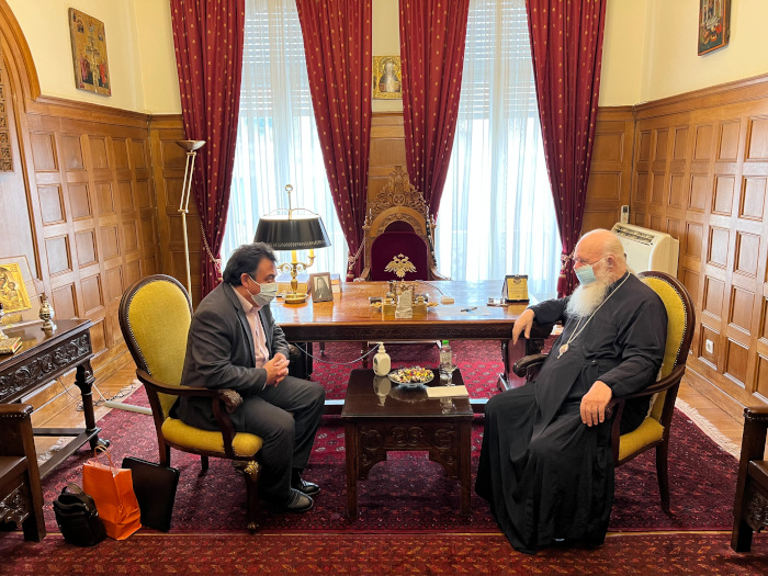 Συνάντηση με τον Βουλευτή της Ν.Δ. κ. Ιωάννη Λοβέρδο είχε σήμερα (10.03.22) το πρωί ο Αρχιεπίσκοπος Αθηνών και πάσης Ελλάδος κ. Ιερώνυμος, όπου συζήτησαν διάφορα θέματα κοινού ενδιαφέροντος. Στην συνέχεια τον Μακαριώτατο επισκέφθηκε ο κ. Απόστολος Φορλίδας, Πρόεδρος «ΦΑΡΟΥ ΕΛΠΙΔΑΣ».