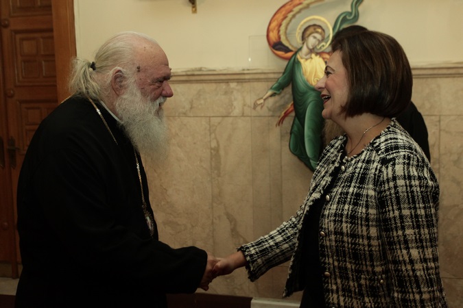 Ο Αρχιεπίσκοπος Αθηνών και πάσης Ελλάδος κ. Ιερώνυμος δήλωσε μετά το τέλος της συνάντησης με την Υφυπουργό Εσωτερικών τα εξής : “Θέλω και εγώ να εκδηλώσω τη χαρά μου για τη συνάντηση αυτή. Είχαμε από πολύ καιρό αλληλουποσχεθεί ότι θα βρεθούμε να συζητήσουμε. Με την κυρία Υπουργό πέρα από τις ευχές που ανταλλάξαμε συζητήσαμε και διάφορα κοινωνικά θέματα , αρμοδιότητος της οικογένειας και διαφόρων συμβάντων μέσα στην κοινωνία. Αρκετό υλικό υπάρχει για συνεργασία και θα δώσουμε και συνέχεια”.