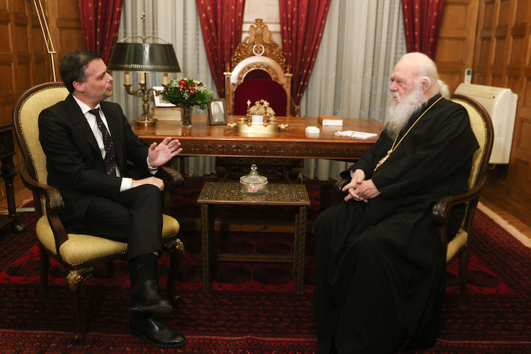 Ο κ. Δούκας συνοδευόμενος από την σύζυγό του Γεωργία Πολυτάνου επισκέφθηκαν το απόγευμα τον Μακαριώτατο στην Ιερά Αρχιεπισκοπή Αθηνών.