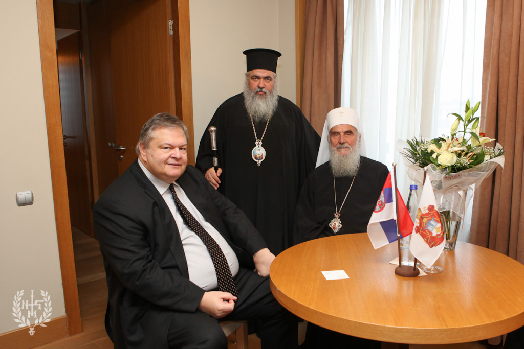 Τον Πατριάρχη Σερβίας κ Ειρηναίο συνάντησε ο αντιπρόεδρος της Κυβέρνησης και υπουργός Εξωτερικών κ. Ευάγγελος Βενιζέλος κατά την παραμονή του πρώτου στην Ιερά Μητρόπολη Νεαπόλεως και Σταυρουπόλεως.