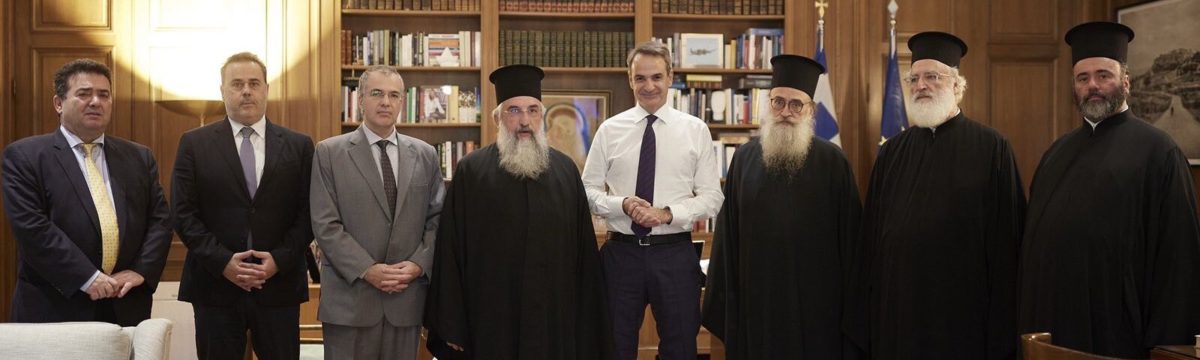 Ο Πρωθυπουργός κ. Κυριάκος Μητσοτάκης συναντήθηκε με τους Σεβασμιωτάτους : Αρχιεπίσκοπο Κρήτης κ. Ευγένιο, Γορτύνης και Αρκαδίας κ. Μακάριο, Αρκαλοχωρίου, Καστελλίου και Βιάννου κ. Ανδρέα, παρισταμένου του Υπουργού Επικρατείας κ. Σταύρου Παπασταύρου και του Γενικού Γραμματέα του Υπουργείου Παιδείας, Θρησκευμάτων και Αθλητισμού κ. Γιώργου Καλαντζή.