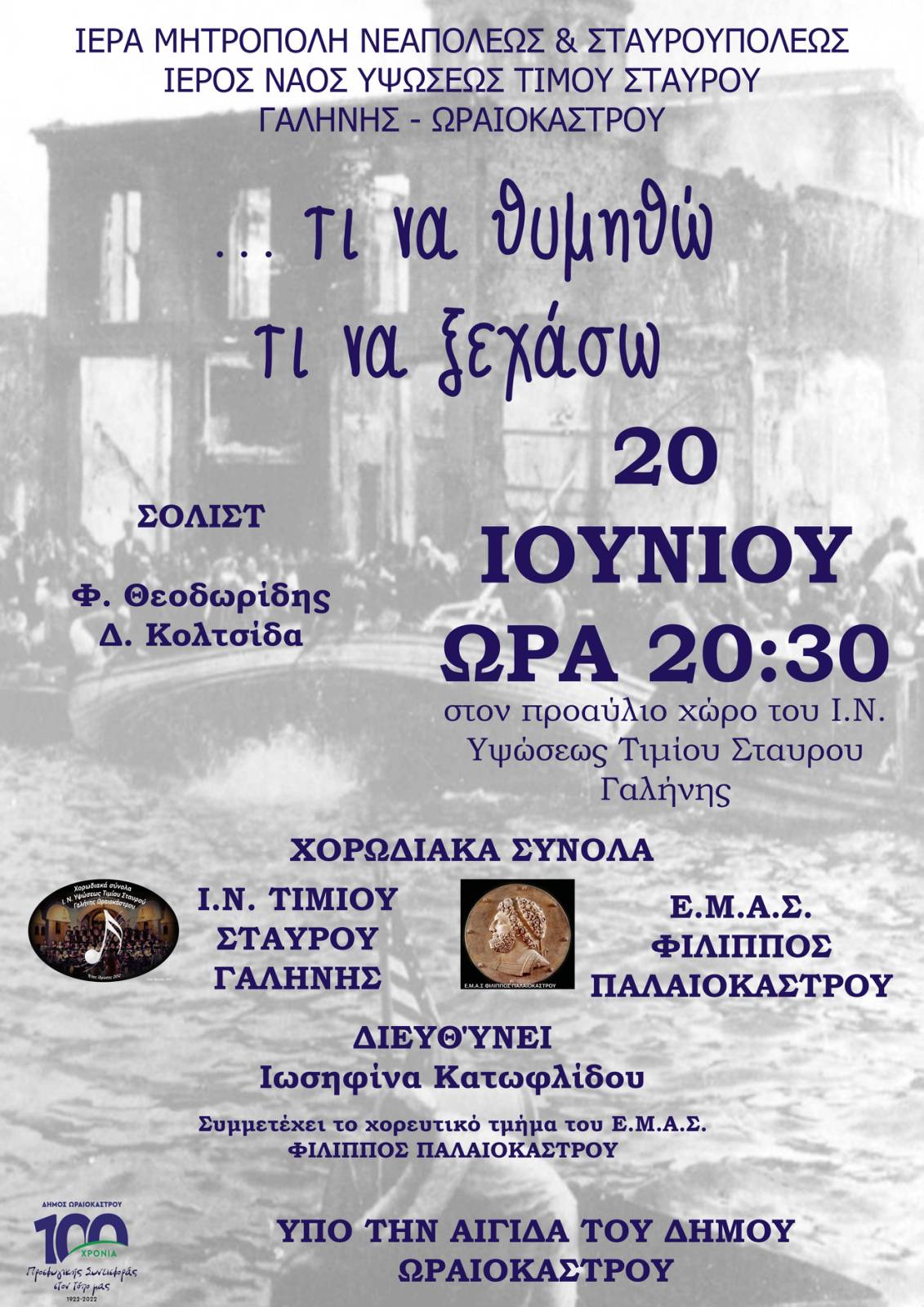 Ο Ι. Ναός Υψώσεως Τιμίου Σταυρού της Ι. Μητροπόλεως Νεαπόλεως διοργανώνει Συναυλία αφιερωμένη στη Σμύρνη, στις 20 Ιουνίου και ώρα 20:30 μ.μ.