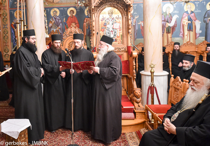 Στο καθολικό της Ιεράς Μονής έψαλλαν επίκαιρους ύμνους οι αδελφότητες από την Ιερά Μονή Αγίας Κυριακής Λουτρού, Ιεράς Μονής Αγίων Πάντων Παλατιτσίων και Ιεράς Μονής Τιμίου Προδρόμου Σκήτης Βεροίας.