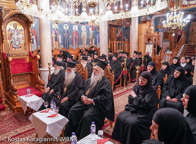 Στο καθολικό της Ιεράς Μονής έψαλλαν επίκαιρους ύμνους οι αδελφότητες από την Ιερά Μονή Κοιμήσεως Θεοτόκου Μικροκάστρου, Ιεράς Μονής Αγίας Κυριακής Λουτρού και Ιεράς Μονής Αγίων Πάντων Παλατιτσίων. Χαιρετισμό απηύθυνε ο Σεβασμιώτατος Μητροπολίτης Βεροίας, Ναούσης και Καμπανίας κ. Παντελεήμων ο οποίος ευχήθηκε καλή και ευλογημένη χρονιά σε όλους τους μοναχούς και τις μοναχές και ευχαρίστησε ιδιαιτέρως τις Αδελφότητες από την Ιερά Μονή Κοιμήσεως της Θεοτόκου Μικροκάστρου και Ιεράς Μονής Μεταμόρφωσης του Σωτήρος Δρυοβούνου που ανταποκρίθηκαν στην πρόσκληση του. Εν συνεχεία τον λόγο πήρε ο κεντρικός ομιλητής της Συνάξεως Σεβασμιώτατος Μητροπολίτης Σισανίου και Σιατίστης κ. Παύλος. Μετά το πέρας των ομιλιών ακολούθησε στο αρχονταρίκι της Ιεράς Μονής η κοπή της Βασιλόπιτας όπου η Αδελφότητα της Ιεράς Μονής Τιμίου Προδρόμου Σκήτης Βεροίας έψαλλε διάφορα κάλαντα.