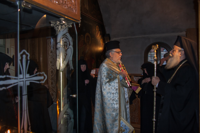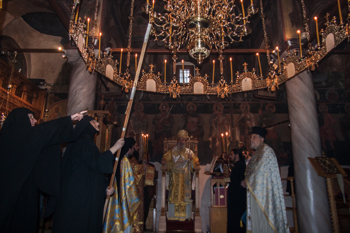 Εις το τέλος του κηρύγματος ο Ποιμενάρχης μας ευχήθηκε εις την εορτάζουσα Καθηγουμένη λέγοντας χαρακτηριστικά: