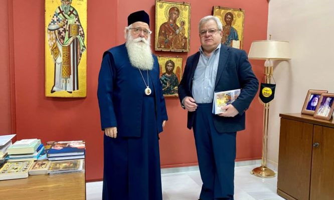 Συνεργασία για την αντιμετώπιση του φαινομένου της σχολικής βίας είχαν σήμερα στο Συνεδριακό Κέντρο Θεσσαλίας ο Σεβ. Μητροπολίτης Δημητριάδος κ. Ιγνάτιος με τον Δ/ντή της Β/θμιας Εκπαίδευσης Μαγνησίας κ. Σωκράτη Σαβελίδη.