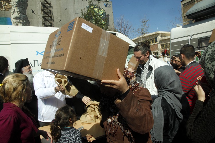 Παράλληλα, την ίδια ώρα, σε μία από τις επανειλημμένες δράσεις της η ΜΚΟ της Ιεράς Αρχιεπισκοπής Αθηνών ΑΠΟΣΤΟΛΗ διένειμε στους πρόσφυγες του κέντρου υποδοχής τρόφιμα και χρηματοδότησε τον εμβολιασμό των παιδιών.