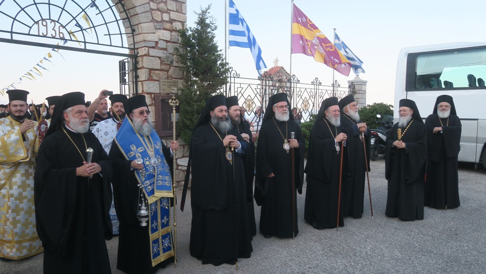 Αμέσως μετά, τελέσθηκε Πανηγυρικός Εσπερινός, προεξάρχοντος του ΣΕβασμιωτάτου Μητροπολίτου Λαγκαδά κ. Ιωάννου, προ του πέρατος του οποίου ο Σεβασμιωτατος κ. Δωρόθεος Β’ αναφέρθηκε στα γεγονότα της θαυμαστής Ευρέσεως της Εικόνας του Αγίου Δημητρίου στις 25 Μαΐου 1936 και στην θαυματουργό Εικόνα της Ζωοδόχου Πηγής, η οποία για πρώτη φορά εξέρχεραι των ορίων της ομωνύμου Ιεράς Μονής της Άνδρου, ενώ ευχαρίστησε τους Σεβασμιωτάτους Αρχιερείς, τον Κλήρο και το λαό για την παρουσία τους.