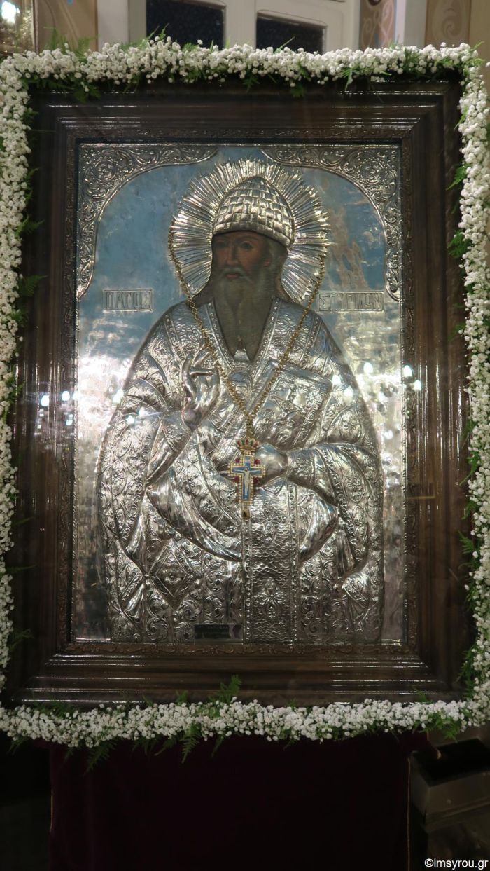 Ο Σεβασμιώτατος κ. Δωρόθεος Β’ στην ομιλία του αναφέρθηκε στην πίστη του Αγίου και τη διδασκαλία του περί της εμμονής των Χριστιανών σ` αυτήν, στη δικαιοσύνη του Αγίου προς τους, όπως δηλώθηκε μέσα απο τη συνομιλία του με την κεκοιμημένη θυγατέρα του, για την απονομή του δικαίου, και στο άφθαρτο σκήνωμά του, ως απάντηση σε όσους σήμερα διακηρύσσουν την καύση των νεκρών και όχι τη χριστιανοπρεπή ταφή του σώματός τους, ευχήθηκε για τις επερχόμενες εορτές και ευχαρίστησε τον Εφημέριο του Ναού και Αρχιερατικό Επίτροπο Σύρου, Πρωτοπρ. Φλαβιανό Αλμπέσκου, για τη διακονία του και τη μέριμνά του στον προευτρεπισμό της πανηγύρεως.