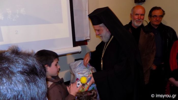 Ακολούθως, προεβλήθησαν δύο μικρά βίντεο από την Ενθρόνιση του Σεβασμιωτάτου Μητροπολίτη Σύρου κ. Δωροθέου Β’ στη Σύρο και την Κέα και ένα βίντεο σχετικά με τις δραστηριότητες του προσφάτου Διεθνούς Σεμιναρίου Πειραματικού Φωτισμού, που διεξήχθη στην Κέα τον Οκτώβριο του 2015, υπό την αιγίδα της Ιεράς Μητροπόλεως και διοργανώθηκε από την Ελληνική Επιτροπή Φωτισμού.