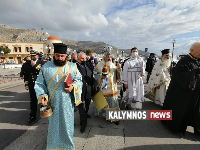 Στην Κάλυμνο, το πρώι της 6ης Ιανουαρίου 2022, ανήμερα της εορτής, τελέστηκε Θεία Λειτουργία ιερουργούντος του Μητροπολίτου κ. Παΐσιου. Ακολούθως, ο κ. Παΐσιος, συνοδευόμενος από τις στρατιωτικές και πολιτειακές αρχές του νησιού, κατευθύνηθκε στο λιμάνι του νησιού για την τελετή Αγιασμού των υδάτων.