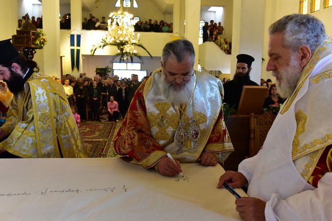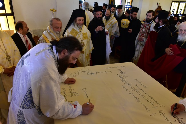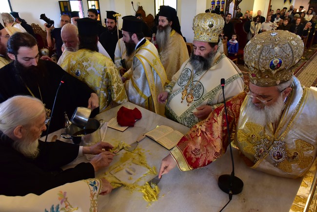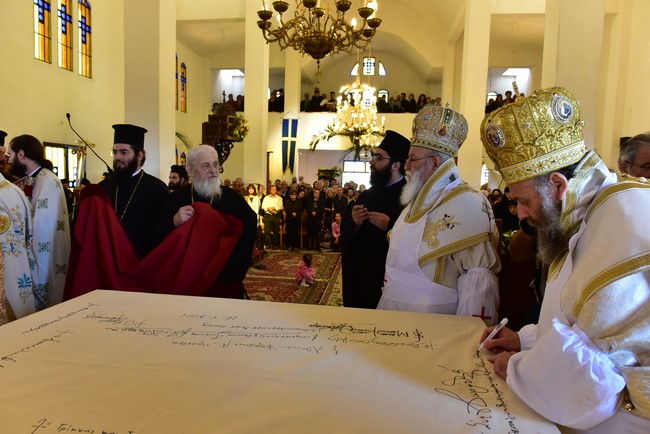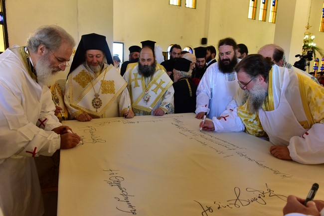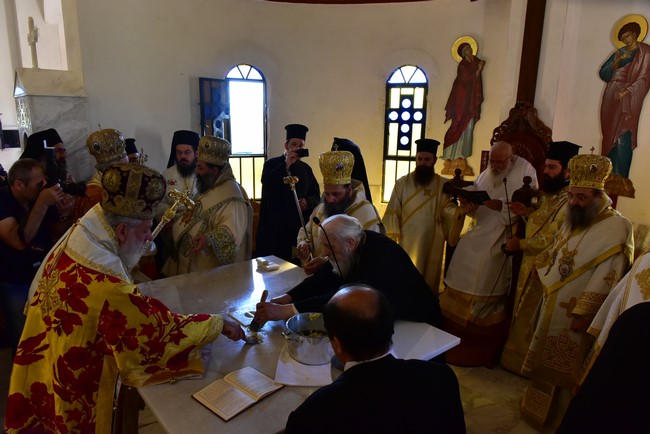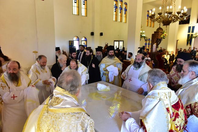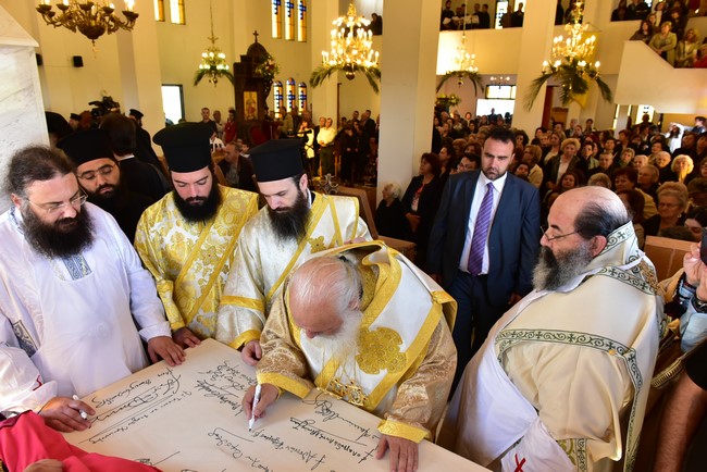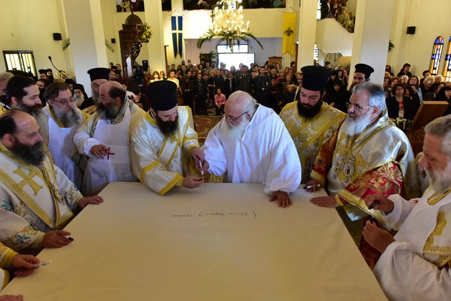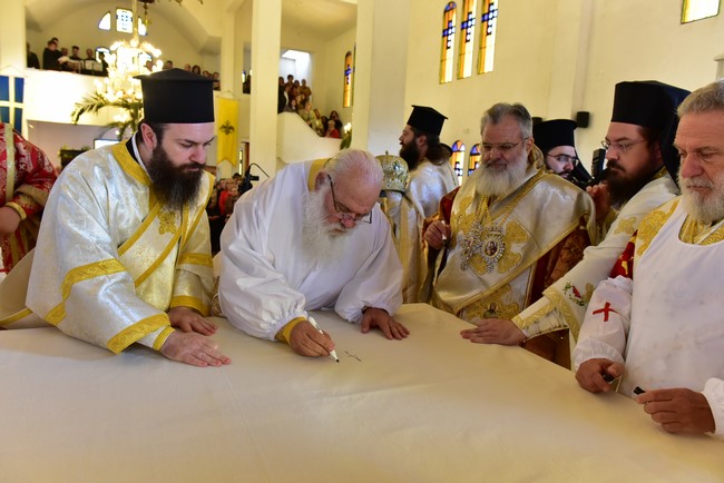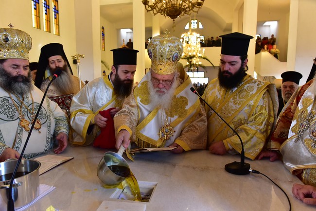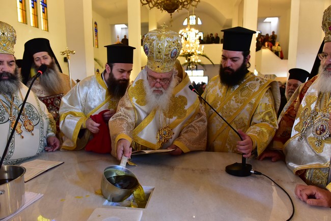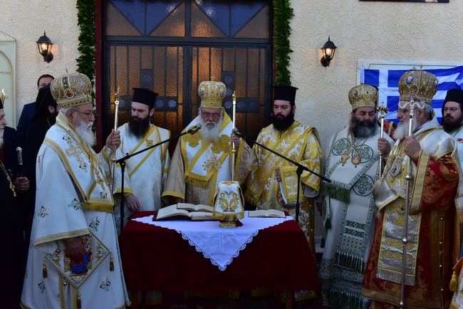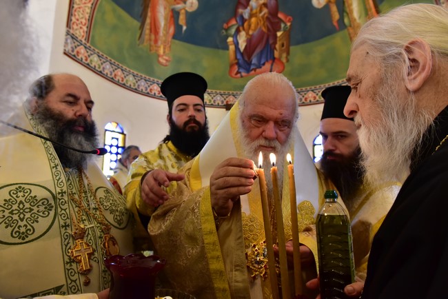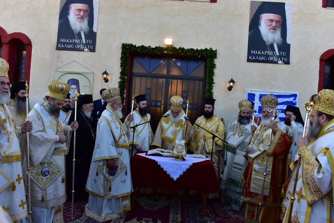 Ο Αρχιεπίσκοπος τέλεσε την ακολουθία των εγκαινίων του ιερού ναού Aγίου Πορφυρίου Καυσοκαλυβίτη στο Ηράκλειο Λαγκαδά, τον πρώτο ναό του αγίου Πορφυρίου στην Ελλάδα, και το μυστήριο της Θείας Ευχαριστίας και συλλειτούργησαν οι Μητροπολίτες Μαντινείας και Κυνουρίας κ. Αλέξανδρος, Βρεσθένης κ. Θεόκλητος, Αρκαλοχωρίου, Καστελίου και Βιάννου κ. Ανδρέας, Σύρου, Τήνου, Άνδρου, Κέας και Μήλου κ. Δωρόθεος, Πατρών κ. Χρυσόστομος, Ιλίου, Αχαρνών και Πετρουπόλεως κ. Αθηναγόρας, Κηφισίας, Αμαρουσίου και Ωρωπού κ. Κύριλλος, Θεσσαλιώτιδος και Φαναριοφερσάλων κ. Τιμόθεος, Ιωαννίνων κ. Μάξιμος, Νέας Κρήνης και Καλαμαριάς κ. Ιουστίνος, Γρεβενών κ. Δαβίδ, Τρίκκης και Σταγών κ. Χρυσόστομος, οι Επίσκοπο Θερμών κ. Δημήτριος και Αμορίου κ. Νικηφόρος, ο επιχώριος Μητροπολίτης Λαγκαδά, Λητής και Ρεντίνης κ. Ιωάννης, ενώ εκ του Ιερού Βήματος παρέστησαν συπροσευχόμενοι ο Μητροπολίτης Πολυανής και Κιλκισίου κ. Εμμανουήλ και ο Επίσκοπος Θεουπόλεως κ. Παντελεήμων.