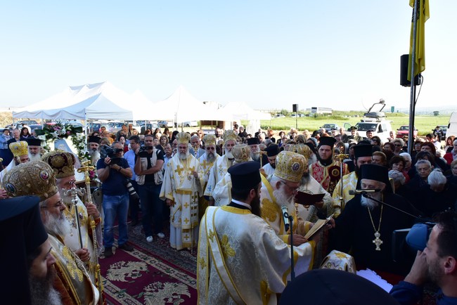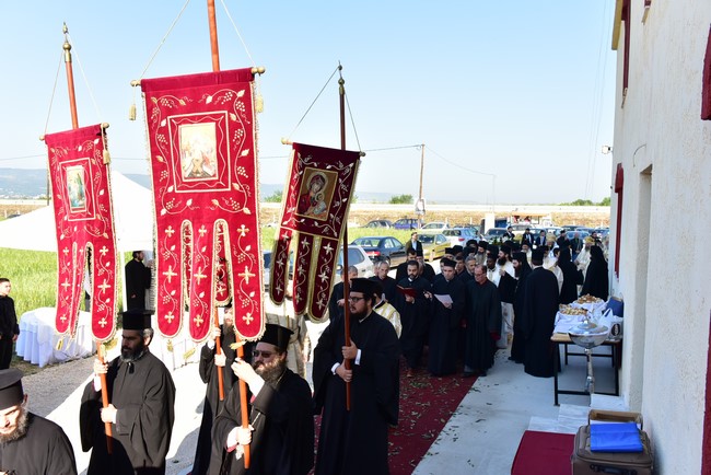 Ανέφερε, επίσης, ότι κατά θαυμαστό τρόπο ο Άγιος υπέδειξε αυτόν τον τόπο για να ανεγερθεί ο ναός του. «Και το σημείο αυτό», υπογράμμισε ο Μητροπολίτης Λαγκαδά, «θα αποτελεί ένα σημάδι στο δρόμο, για να δείχνει στους περαστικούς και στους ταξιδιώτες, τον αληθινό δρόμο που οδηγεί στην εμπειρία της αληθινής ζωής». Σε άλλο σημείο της ομιλίας του ο Μητροπολίτης Λαγκαδά επεσήμανε, ότι «η Εκκλησία μπορεί να έχει εχθρούς, αλλά τους βλέπει όλους με το ίδιο αμείωτο ενδιαφέρον της αγάπης, διότι προορισμός της είναι να οδηγήσει τον άνθρωπο στον Θεό».