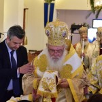 Ο Μητροπολίτης Λαγκαδά επέδωσε στον Αρχιεπίσκοπος την Ύπατη Τιμητική Διάκριση της Μητροπόλεως, τον Χρυσό Σταυρό του Αποστόλου Παύλου και των Αγίων Κυρίλλου και Μεθοδίου, ενώ δεν παρέλειψε να ευχαριστήσει και όλους τους Αρχιερείς που προσήλθαν με χαρά να λάβουν μέρος στην τόσο σημαντική ημέρα αυτή για την Ιερά Μητρόπολη. Ο Αρχιεπίσκοπος ευχαρίστησε τον Μητροπολίτη Λαγκαδά για την πρόσκληση και για την τιμητική αυτή διάκριση και αναφέρθηκε στην καλή συνεργασία που έχει με όλους τους Αρχιερείς, ενώ τόνισε πως αισθάνεται υπερηφάνεια και χαρά που όλοι έχουν ως σκοπό την εξυπηρέτηση του ανθρώπου. «Η πατρίδα μας βρίσκεται σε δύσκολο δρόμο» επεσήμανε ο Αρχιεπίσκοπος συμπληρώνοντας πως «τα βάσανά μας θα συνεχίσουν και ίσως οι δυσκολίες να είναι περισσότερες, αλλά ας ακολουθήσουμε την συμβουλή του Αγίου Πορφυρίου που έλεγε, υπομονή και τα μάτια στραμμένα στον ουρανό».