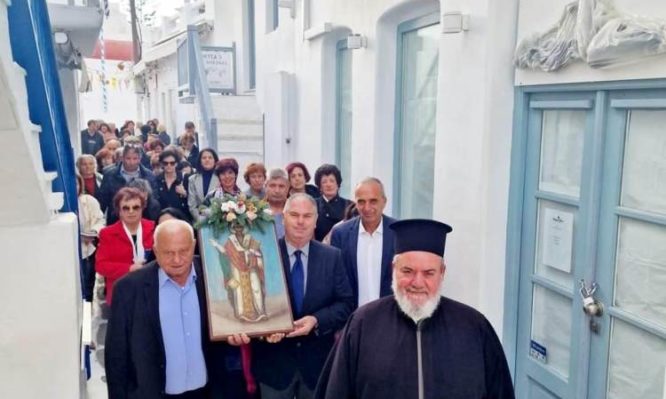 Αμέσως μετά οι πιστοί άναψαν τα φαναράκια και τα κεριά τους από την ακοίμητη κανδήλα του Αγίου και λιτανευτικά μετέφεραν την εικόνα, στον Ιερό Μητροπολιτικό