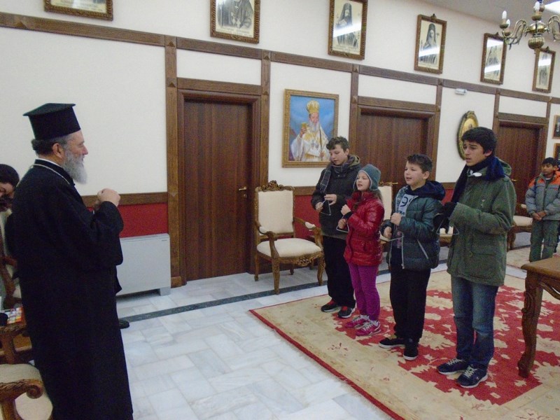 Τα κάλαντα της Πρωτοχρονιάς έψαλλαν στον μητροπολίτη Χαλκίδος κ. Χρυσόστομο, σήμερα το πρωί αμέσως μετά τη θεία λειτουργία, πολλά παιδιά, εκπρόσωποι κατηχητικών, συλλόγων, παιδιά ιερέων, ευχόμενα με αυτόν τον παραδοσιακό τρόπο στον πνευματικό τους πατέρα και στους συνεργάτες του κληρικούς και λαϊκούς.