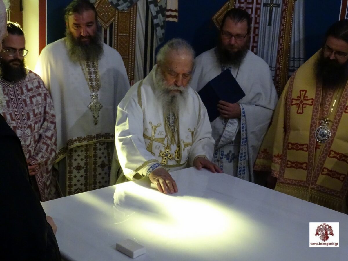 Αρχικά, τελέσθηκε ο Όρθρος χοροστατούντος του Θεοφιλεστάτου Επισκόπου Λακεδαιμονίας κ. Θεοφίλου. Εν συνεχεία, ο Σεβασμιώτατος Μητροπολίτης μας κ. Ευστάθιος προέστη της ακολουθίας των εγκαινίων. Κατά τη διάρκεια των εγκαινίων, ο σεπτός Ποιμενάρχης μας εξηγούσε αναλυτικά στους πιστούς τη σημασία και τους συμβολισμούς κάθε ενέργειας. Αμέσως μετά, τελέσθηκε η πρώτη Αρχιερατική Θεία Λειτουργία.