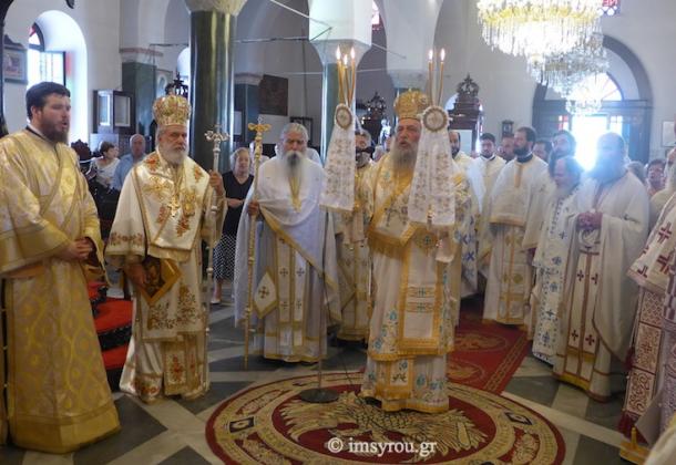 Ο εορτάζοντας ιεράρχης προεξήρχε της Θείας Λειτουργίας που τελέστηκε, συμπαραστατούμενος απο τον μητροπολίτη Σύρου κ. Δωρόθεο.