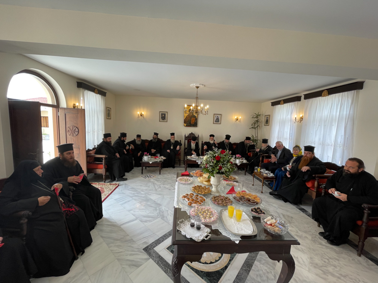 Δέσμιος της αγάπης πάντων υμών». Στην Ιερά Μονή Ζωοδόχου Πηγής, Παρθενώνος, προσφέρθηκε πλούσια δοχή υπό της Αδελφότητας, όπου εκεί ο Σεβ. Ποιμενάρχης κ. Αμφιλόχιος ευχαρίστησε την σεβαστή Γερόντισσα και Καθηγουμένη Μαρκέλλα μοναχή «δια την αβραμιαία φιλοξενία, κυρίως δε δια το «εργόχειρο» της ευχής και προσευχής».