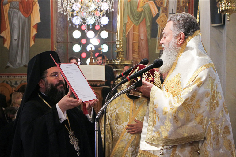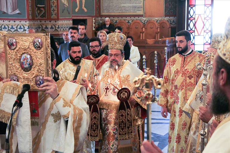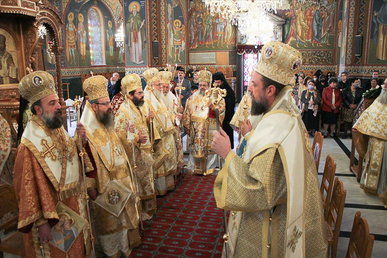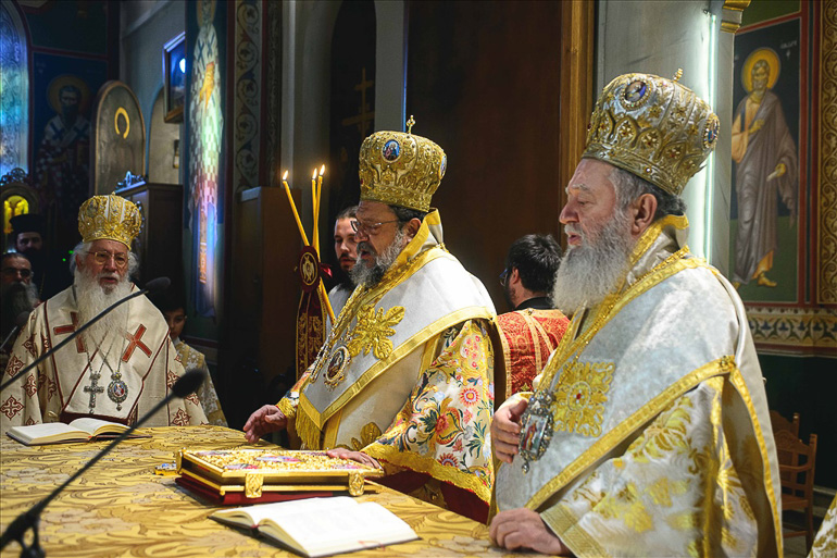 Κατά τον Όρθρο και την Πολυαρχιερατική Θεία Λειτουργία προεξήρχε ο εορτάζων Μητροπολίτης Μεσσηνίας κ. Χρυσόστομος, συλλειτουργούντων των Σεβ. Μητροπολιτών Χαλκίδος κ. Χρυσοστόμου, Θηβών κ. Γεωργίου, Ηλείας κ. Αθανασίου, Ιλίου κ. Αθηναγόρου, Κηφισίας κ. Κυρίλλου, Μαρωνείας κ. Παντελεήμονος, Θεσσαλιώτιδος κ. Τιμοθέου, Μεγάρων κ. Κωνσταντίνου, Σταγών κ. Θεοκλήτου, Θήρας κ. Αμφιλοχίου και του Θεοφιλ. Επισκόπου Ωρεών κ. Φιλοθέου.