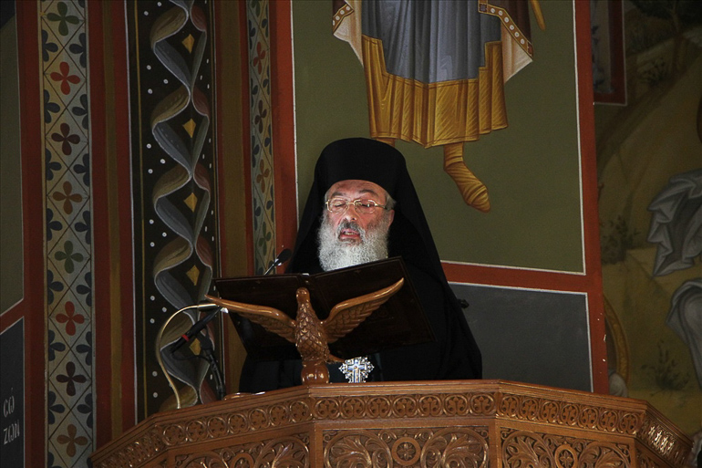 Τον θείο λόγο κήρυξε ο Πανοσιολ. Αρχιμ. Χριστοφόρος Νταμάτης, ο οποίος αναφέρθηκε στην προσωπικότητα και τις αρετές του Μεγάλου Ιεράρχου της Εκκλησίας Ιωάννου του Χρυσοστόμου, αλλά και στην προσωπικότητα και το έργο του εορτάζοντος Μητροπολίτη, ευχόμενος τα έτη του να είναι πολλά και καρποφόρα.