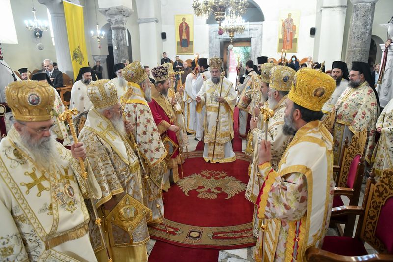 Πανηγυρική, πολυαρχιερατική θ. Λειτουργία, τελέσθηκε σήμερα, Πέμπτη 8 Μαΐου 2025, στον ιερό Καθεδρικό και Προσκυνηματικό Ναό Αγ. Θεοδώρων Σερρών, προεξάρχοντος του άγοντος τα σεπτά ονομαστήριά του, Σεβ. Ποιμενάρχου της Εκκλησίας των Σερρών και της Νιγρίτης κ. Θεολόγου, συνιερουργησάντων των Σεβ. Μητροπολιτών, Σύρου, Τήνου, Άνδρου, Κέας, Μήλου, Δήλου και Μυκόνου κ. Δωροθέου, Σιδηροκάστρου κ. Μακαρίου, Ελευθερουπόλεως κ. Χρυσοστόμου (συμπροσευχομένου εντός του ιερού Βήματος), Γλυφάδας, Ελληνικού, Βούλας, Βουλιαγμένης και Βάρης κ. Αντωνίου, Ιερισσού, Αγ. Όρους και Αρδαμερίου κ. Θεοκλήτου, Τρίκκης, Γαρδικίου και Πύλης κ. Χρυσοστόμου, Καλαβρύτων και Αιγιαλείας κ. Ιερωνύμου, Λαγκαδά, Λητής και Ρεντίνης κ. Πλάτωνος, Θήρας, Αμοργού και Νήσων κ. Αμφιλοχίου και Δράμας κ. Δωροθέου.