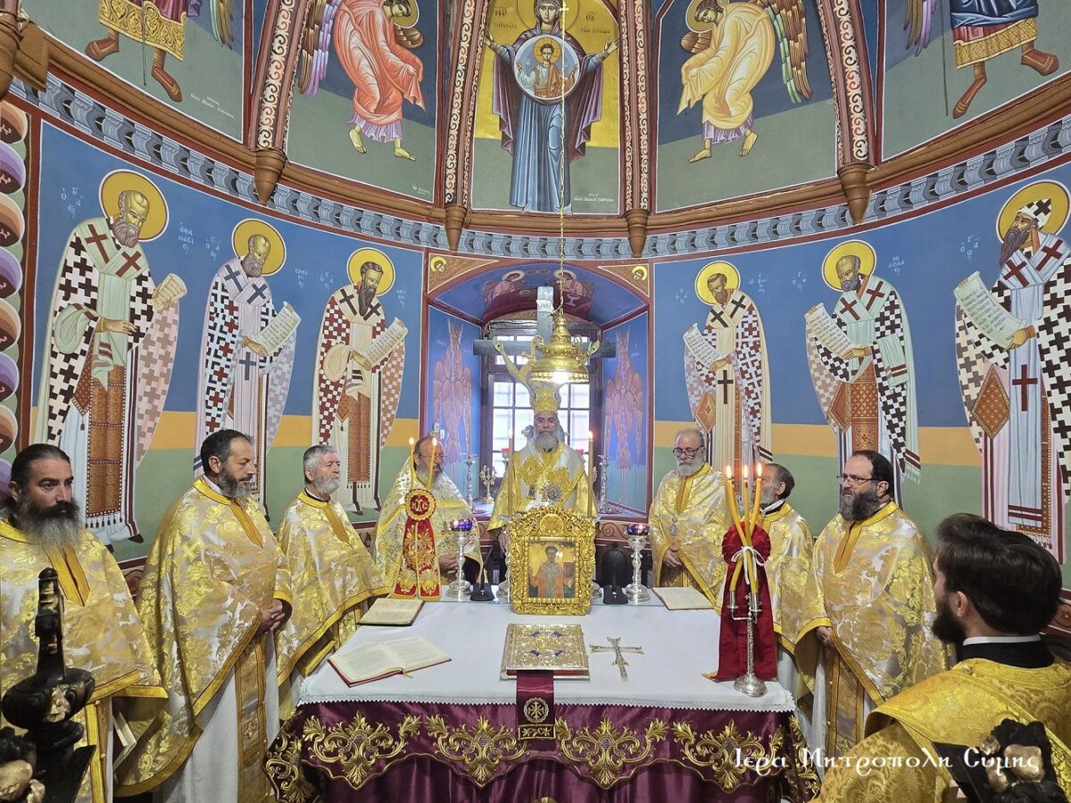Σήμερα τό πρωΐ, Τετάρτη 13η Νοεμβρίου, κυριώνυμη ἡμέρα τῆς ἑορτῆς, ὁ Σεβ. Μητροπολίτης μας κ. Χρυσόστομος, χοροστάτησε στόν Ὄρθρο καί τέλεσε τήν Θ. Λειτουργία ὁμοίως στόν Ἱερό Μητροπολιτικό Ναό τοῦ Τιμίου Προδρόμου Σύμης μέ συλλειτουργούς του τόν Πανοσιολ. Καθηγούμενο τῆς Ἱ. Μονῆς Πανορμίτου Ἀρχιμ. Ἀντώνιο Πατρό, ὁ ὁποῖος προτροπῇ τοῦ Σεβ. Μητροπολίτου μας ἐκήρυξε τόν θεῖον λόγον, τόν Γενικό Ἀρχιερατικό Ἐπίτροπο καί Ἐφημέριο τοῦ Μητροπολιτικοῦ Ναοῦ Πρωτοπρ. Στέφανο Μακρῆ, τόν Οἰκονόμον π. Χρῆστο Σταθόπουλο καί τούς Πρεσβυτέρους, π. Παντελεήμονα Μακρόπουλο, τόν π. Γεώργιο Χατζηχρυσάφη, τόν π. Ἀντώνιο Μανιᾶ, τόν π. Γεώργιο Κακακιό καί τόν Ἱεροδιάκονο π. Παῦλο Τερεζάκη. Ξεχωριστές παρουσίες ἦταν τοῦ Δημάρχου Σύμης κ. Ἐλευθερίου Παπακαλοδούκα, τοῦ Ἀντιδημάρχου Σύμης κ. Νικήτα Γρύλλη, τοῦ Διοικητοῦ τοῦ 549 Τ.Ε. Ἀντισυνταγματάρχη κ. Στυλιανοῦ Φωκᾶ, τοῦ Λιμενάρχη Σύμης κ. Σταύρου Μακρῆ, τῆς Προέδρου τῆς Ἑνώσεως Γυναικῶν Σύμης κ. Σεβαστῆς Νικόλη καί τῶν ἐκπροσώπων τῶν λοιπῶν τοπικῶν Ἀρχῶν, Φορέων καί Συλλόγων.
