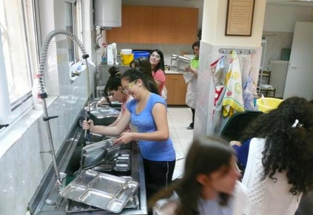 Οι μαθήτριες επισκέφθηκαν τις εγκαταστάσεις όπου καθημερινά προετοιμάζονται τα φιλανθρωπικά συσσίτια της ενορίες βοηθώντας τις εθελόντριες στην προετοιμασία του φαγητού που στη συνέχεια διανεμήθηκε σε πολίτες που αδυνατούν να αντεπεξέλθουν στις καθημερινές ανάγκες.