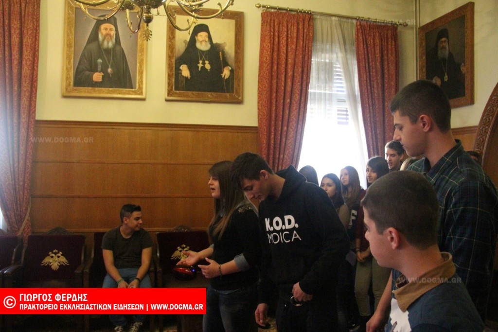 Ο κ. Ιερώνυμος ευχαρίστησε τα παιδιά για την έκπληξη και ευχήθηκε καλές γιορτές προσφέροντας τους από ένα σταυρό ως ευλογία.