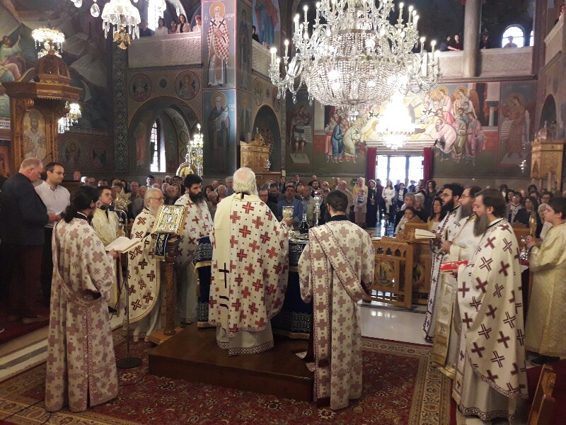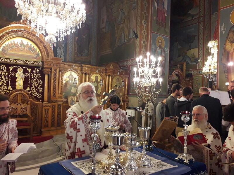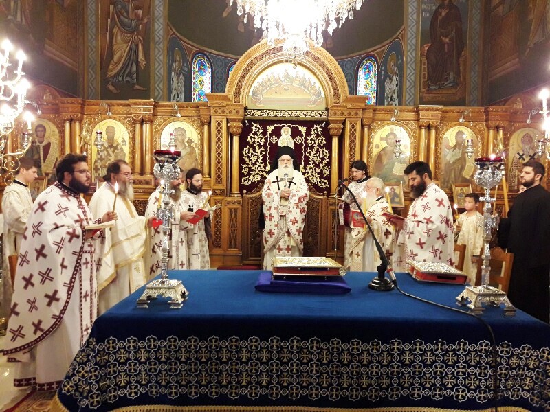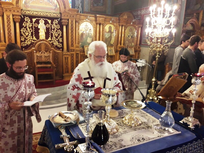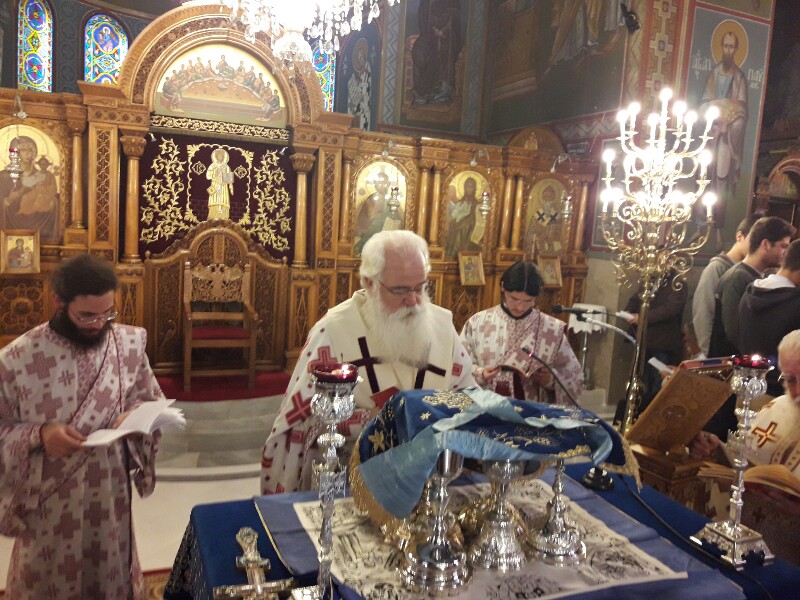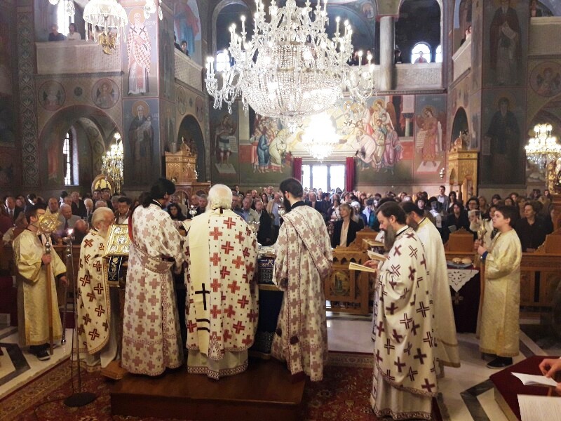 Ο Σεβασμιώτατος Δημητριάδος Ιγνάτιος, φέρων Φαιλόνιο και λιτό Ωμοφόριο, περιστοιχισμένος από τους Ιερείς του Ναού, τέλεσε την Θεία Λειτουργία από του Σολέως, με μέτωπο προς τον λαό και κήρυξε τον Θείο Λόγο αμέσως μετά την εκφώνηση του Ευαγγελικού αναγνώσματος, κατά την κανονική τάξη. Στην ομιλία του ο κ. Ιγνάτιος αναφέρθηκε στην αρχαία λειτουργική παράδοση της Εκκλησίας και τόνισε την σημασία του αναγνώσματος της Παλαιάς Διαθήκης, σκοπός της οποίας ήταν η προετοιμασία του λαού για την υποδοχή του Μεσσία. Ιδιαίτερη ήταν η αναφορά του στο Μυστήριο της Θείας Ευχαριστίας και στην διακριτή προσφορά του Σώματος και του Αίματος του Χριστού στο λαό. Τόνισε δε ότι η Ευχαριστία ήταν ανέκαθεν και είναι το ορατό σημείο της ενότητας των πιστών με τον Χριστό και μεταξύ τους.