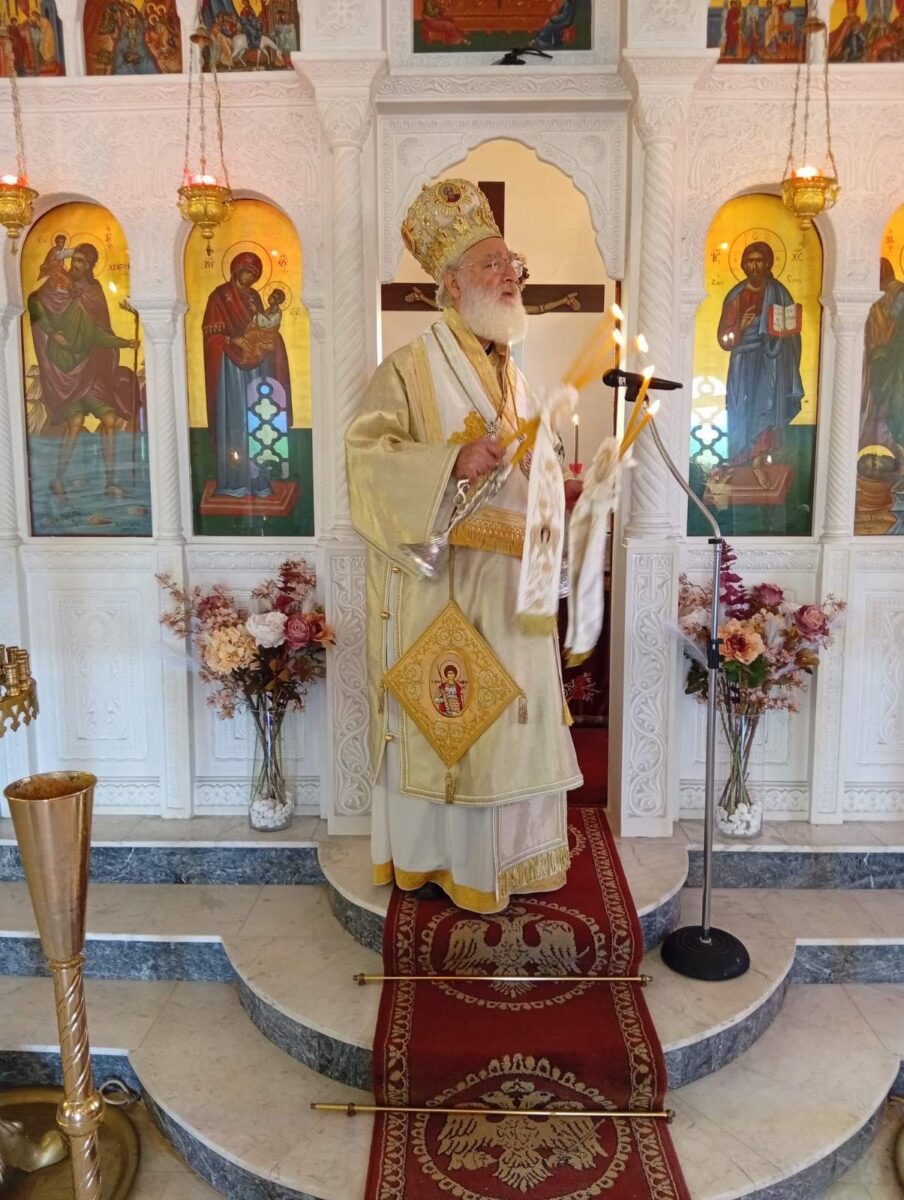 Ο σεπτός Ποιμενάρχης μας τέλεσε την Θεία Λειτουργία, κήρυξε το θείο λόγο στο εκκλησίασμα, ευλόγησε τον οίνον της καινούριας χρονιάς, εξέφρασε την χαρά του για την πανήγυρη και ευχήθηκε έτη πολλά και ευλογημένα.