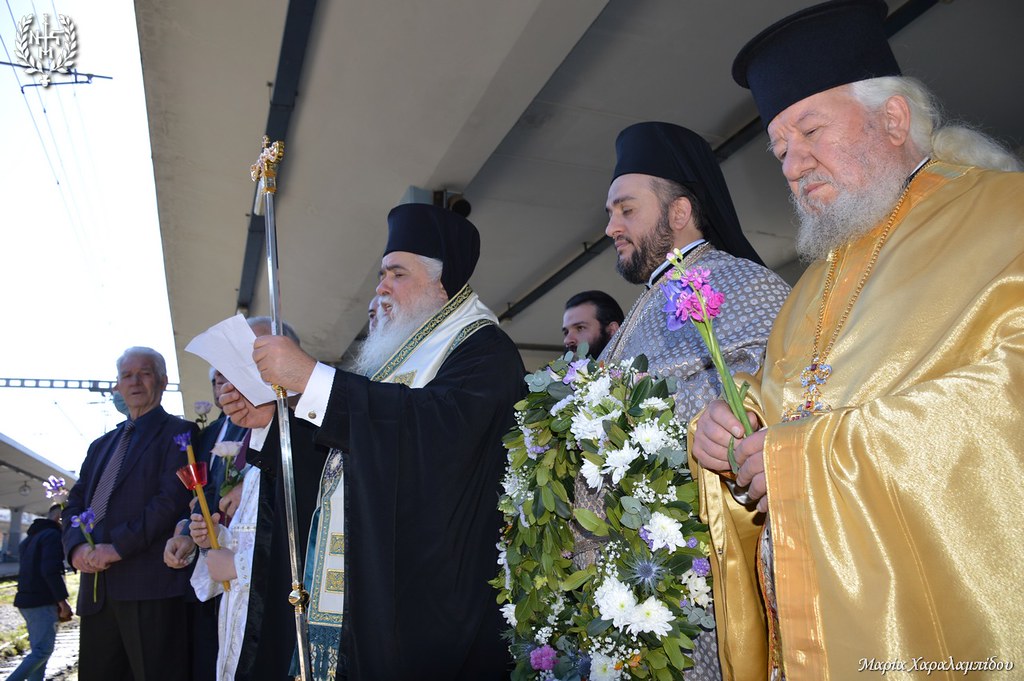 Στις ράγες των γραμμών και μάλιστα στο σημείο που αποτελούσε τον προορισμό του ταξιδιού ο Σεβασμιώτατος και όσοι τον πλαισίωναν εναπέθεσαν στεφάνια και λουλούδια «για τους ταξιδιώτες» που άωρα και αιφνίδια άλλαξε ο προορισμός τους και έγινε τελευταίος σταθμός … η αγκαλιά του Θεού.
