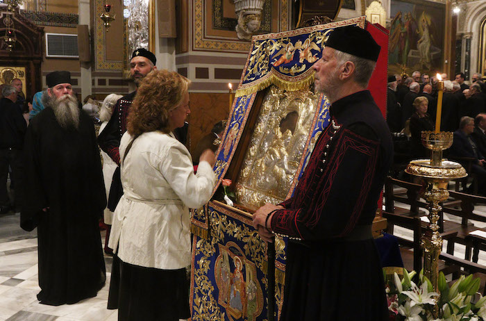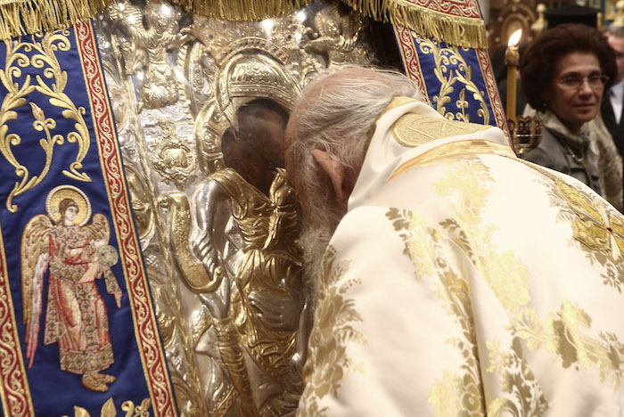 Η ιερά εικόνα της Παναγίας «Άξιον Εστι» -από τον ναό του Πρωτάτου στο Άγιο Όρος- θα παραμείνει στον Μητροπολιτικό Ναό Αθηνών μέχρι τις 15 Μαΐου.